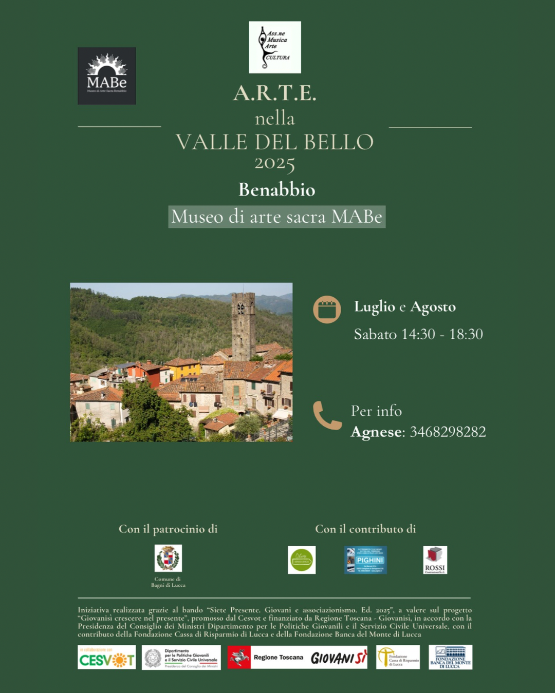 Durante l’estate 2021 il paese di Benabbio è stato oggetto degli itinerari delle “Passeggiate estive a Bagni di Lucca fra arte storia & paesaggio”, organizzate dalla Fondazione Culturale Michel de Montaigne di Bagni di Lucca. Questo progetto ha lo scopo di promuovere una maggiore conoscenza del territorio accompagnando i visitatori attraverso le bellezze artistiche e paesaggistiche della zona; Benabbio è stato scelto quest’anno per la sua interessante storia e per il grande numero di Tesori artistici che possiede.